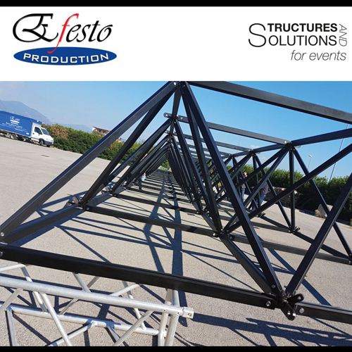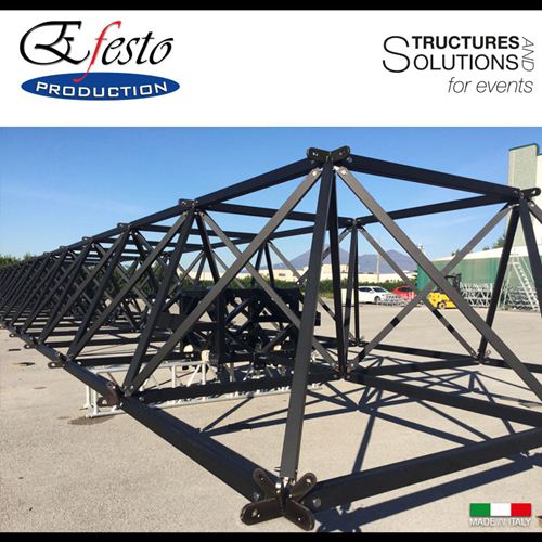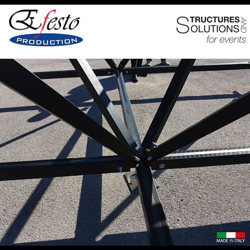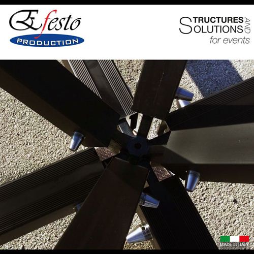 ASTROroof ground support is a modular roof system based on a spatial frame structure disegned and manufactured in Italy by Efesto Production. The roof can be used with the innovative ASTROtowers. ASTROtower is the first demountable tower in the world: it's the new concept of clever combination of optimal transport and highest possible load performance.