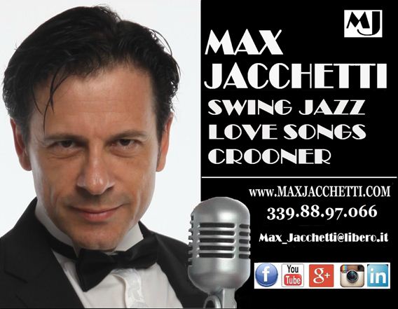 ABOUT ME Max Jacchetti Swing Jazz Love Songs Crooner www.MaxJacchetti.com MAX JACCHETTI inizia a cantare fin da giovanissimo sia come interprete che come autore e compositore melodista di brani propri. E’ in Giappone per un anno intero e come intrattenitore musicale ha una importante esperienza cantando musica italiana ed internazionale in una lussuosa location situata nel centro di una delle più grandi città nipponiche. Studia diversi anni canto lirico per perfezionare ed affinare la sua tecnica e qualità vocale naturale affidandosi a validi ed esperti maestri di canto. In tale ambito ha svolto, come solista, una frequente attività concertistica con numerose cerimonie e manifestazioni. Vince o è tra i primi classificati di diversi concorsi canori. Alla ricerca di nuove esperienze ed espressioni musicali, trova nella musica SWING JAZZ l’ambiente ideale, in cui gli studi delle sonorità classiche apprese si fondono con atmosfere ed armonie più moderne. Questo incontro permette alla sua vocalità, calda ed elegante, accompagnata da un bel fraseggio ed interpretazione confidenziale, di esprimersi intensamente, con ampia libertà e creatività. Opera prevalentemente per Eventi privati, ma non disdegna le Location pubbliche, manifestazioni od ogni situazione artistica che intenda avvalersi del suo repertorio anni 20-30-40-50-60 di gran classe e della sua elegante e rara vocalità maschile nel genere Swing Jazz.